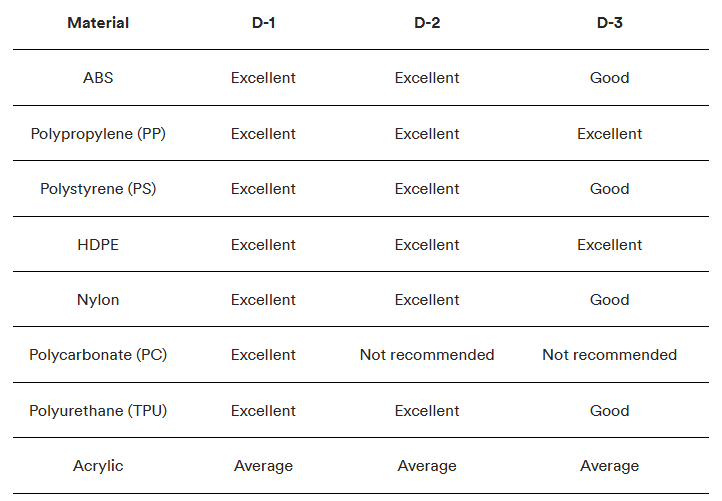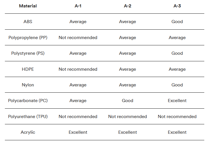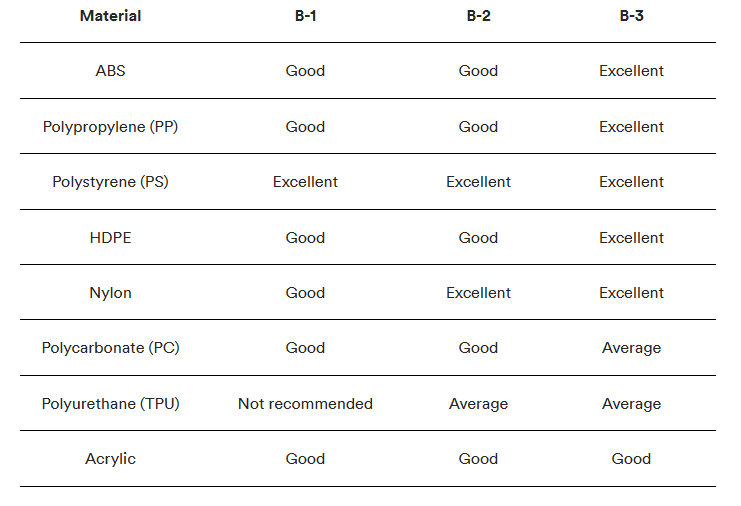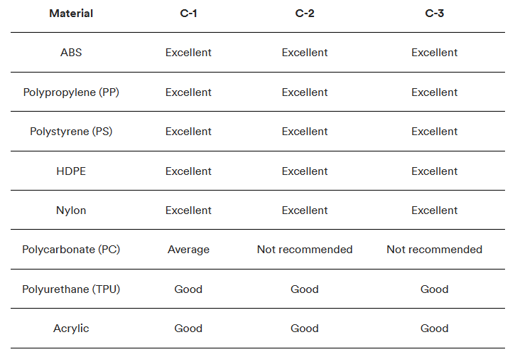 Los acabados de superficies/moldes de SPI producen resultados diferentes según el material que utilice para los componentes de moldeo por inyección. Las tablas a continuación detallan cómo seleccionar el acabado y los materiales del molde adecuados para su aplicación específica.